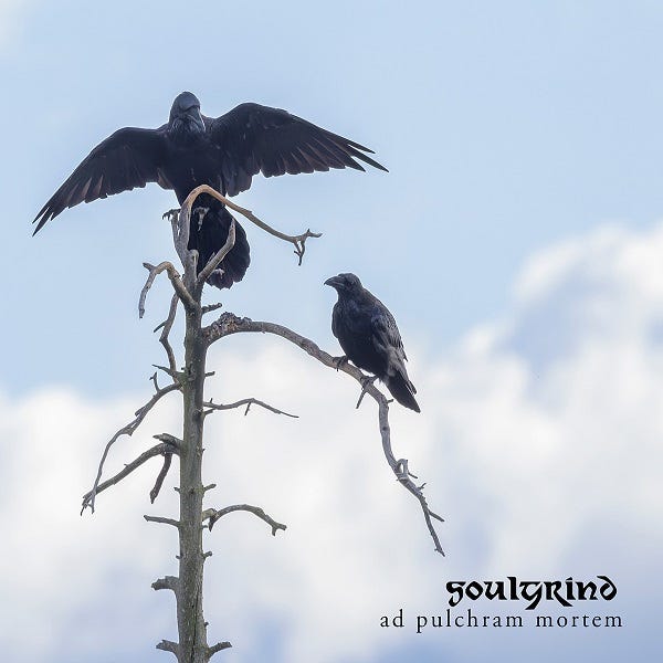 For the album Ad Pulchram Mortem, we made 12 tracks. Of these, we chose "Jylhä metsämies" as the single. "Jylhä metsämies" is the story of a man who walks his own path, bowing to nothing not above, not below, not on this earth. The lyrics reflect Soulgrind very well itself. The music is very self-directed and copies no one or anything. This has always been the case and will remain so. The band sounds like itself. Musically, "Jylhä metsämies" covers the band's journey from Whitsongs, through Kalma/Pakana, to The Tuoni Pathway, while also bringing in much that is new. All in all, in our opinion, it's a brilliant way to open a new chapter. The album itself contains much more, with even some surprising material.